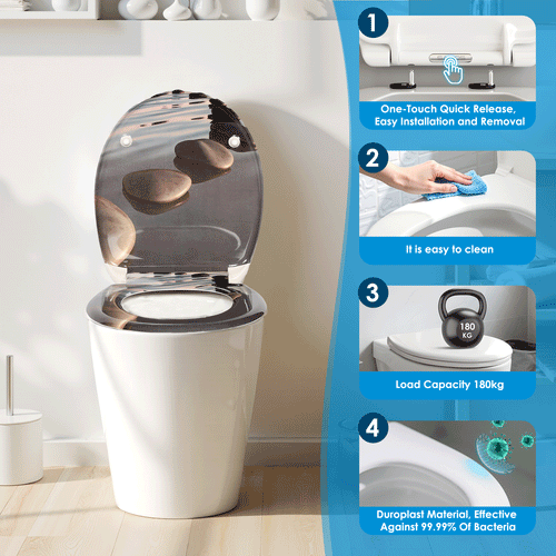 SAINOS D-förmiger Premium-Duroplast Toilettensitz Toilettendeckel, WC Sitz mit Absenkautomatik, Quick-Release Funktion für einfach Reinigung, O Form Weiß Toilettensitz mit Verstellbaren Scharnieren(UF20-W-D)