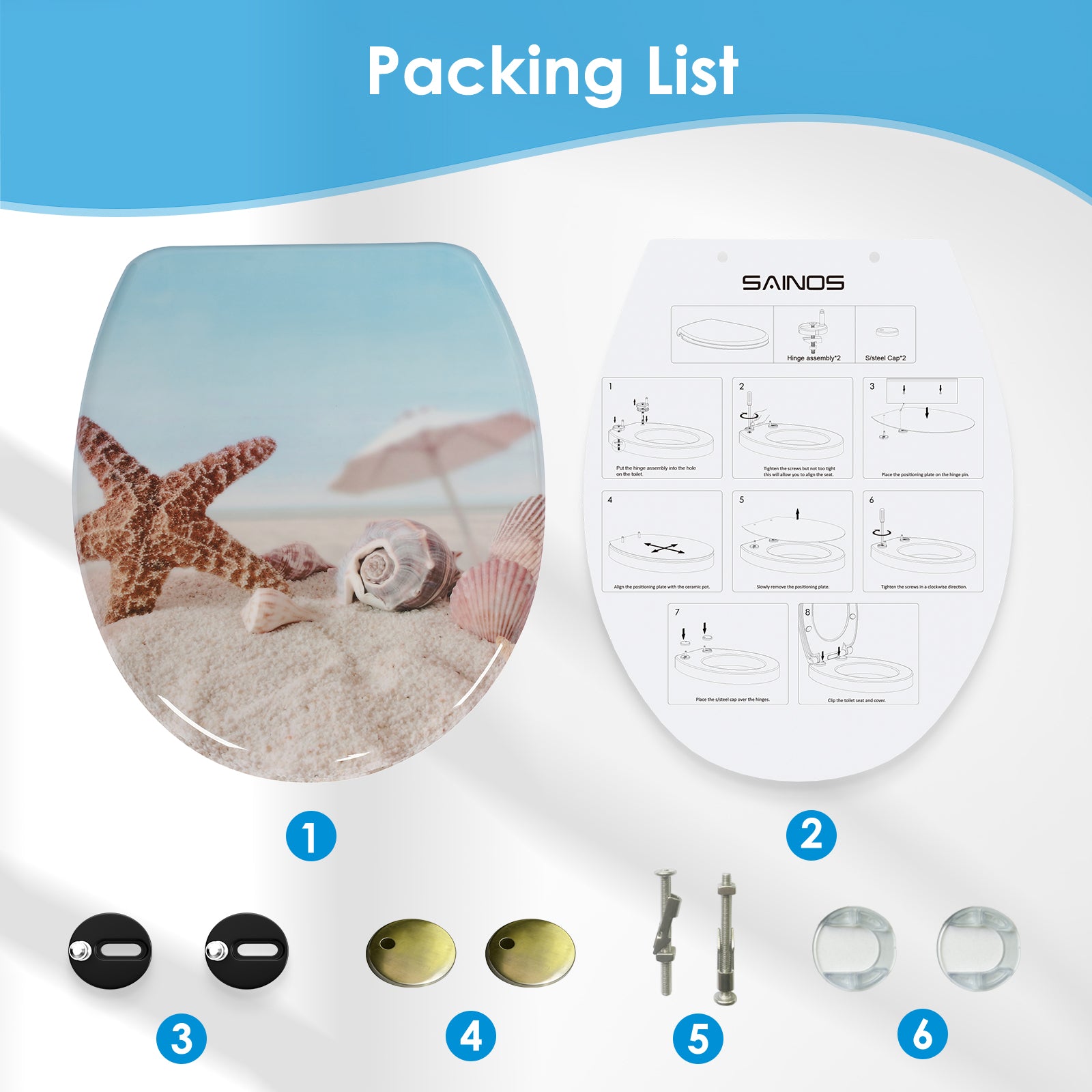 SINOBATH Duroplast WC-Sitz O-Form, Seestern-Optik Absenkautomatik — UF12-022